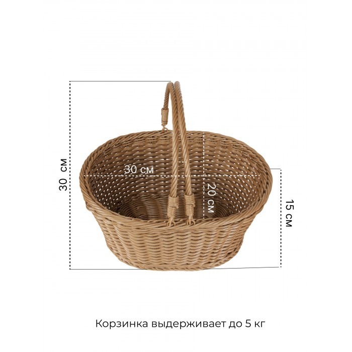 Корзина плетеная с ручками Двойное плетение маленькое S (2 ручки) (30*23*15 ) иск/ротанг, песочный 265838
