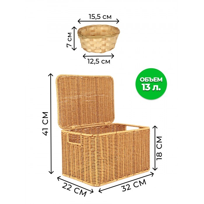 Корзина плетеная с/крыш M 320*220*180-mpl-fbo + салатник 16*7см иск/ротанг, песочный 261623