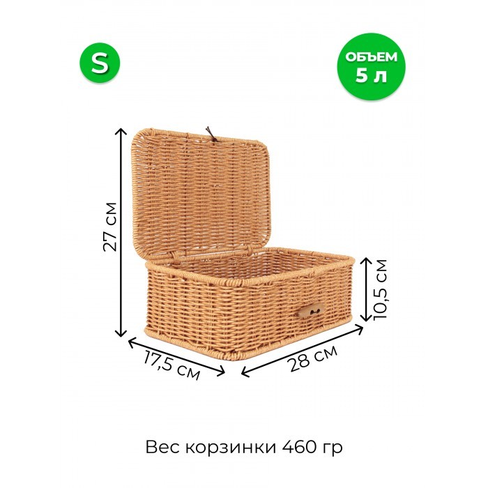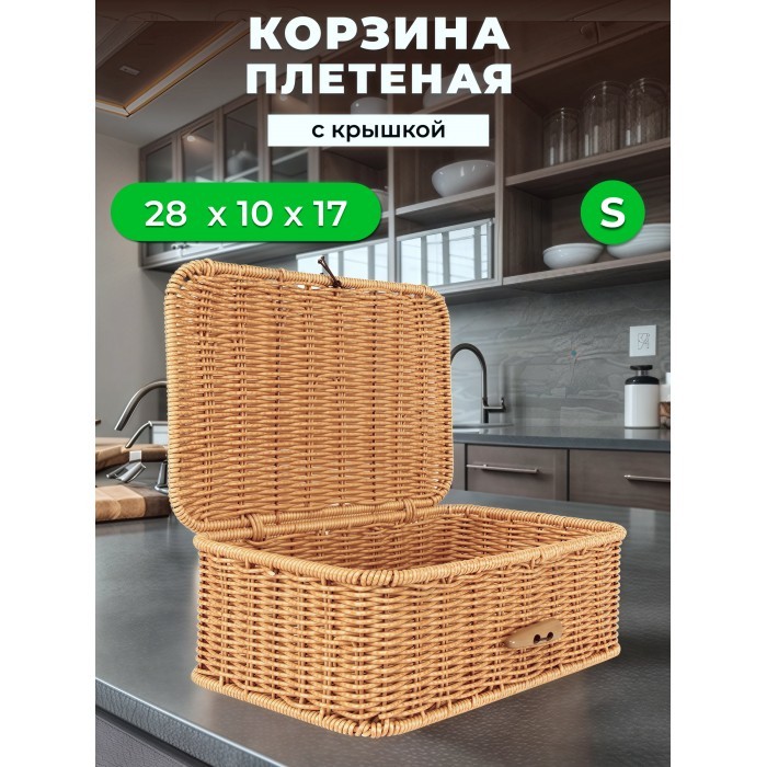 Корзина плетеная с/крыш Пуговка S 285*175*100-mpl-fbo иск/ротанг, песочный 265671