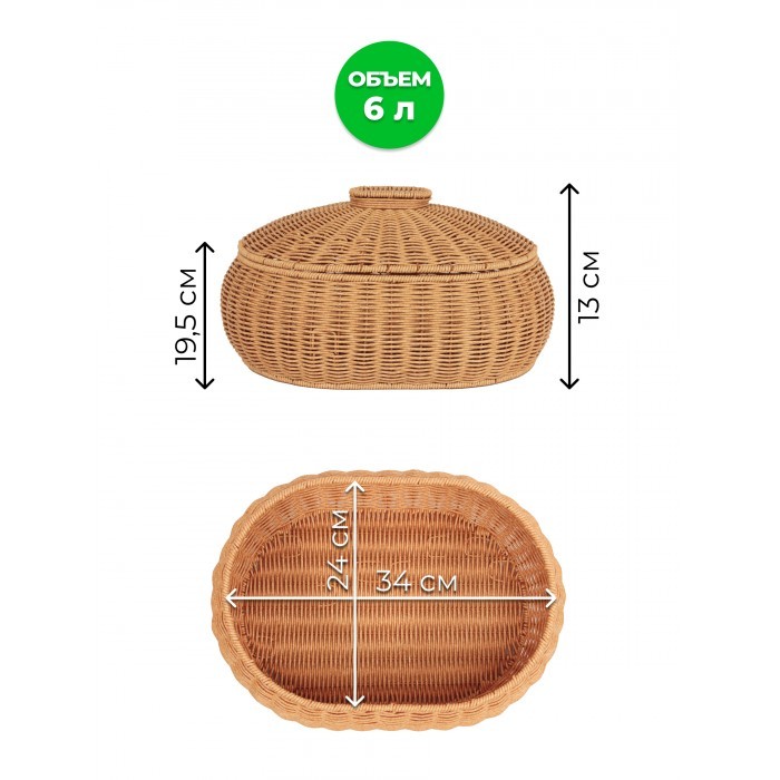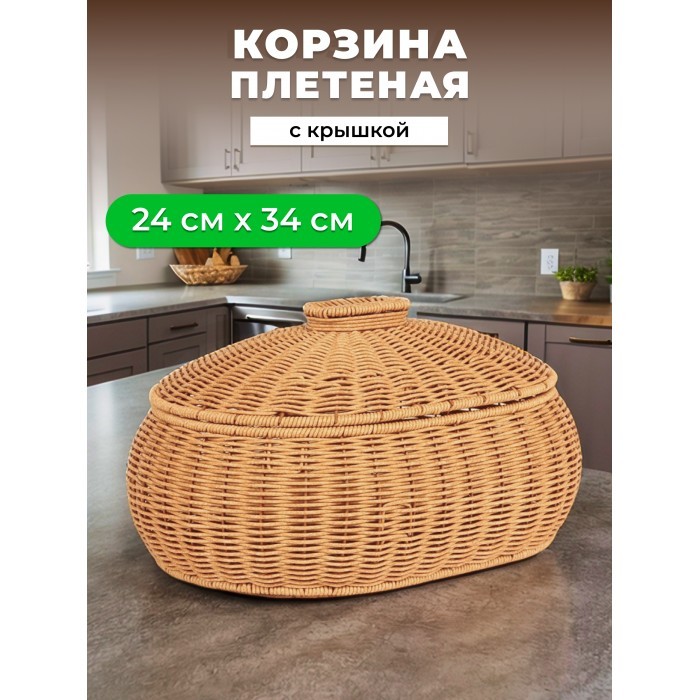 Корзина плетеная с/крыш Кастрюля овал 350*240*200mpl-fbo иск/ротанг, песочный 265677