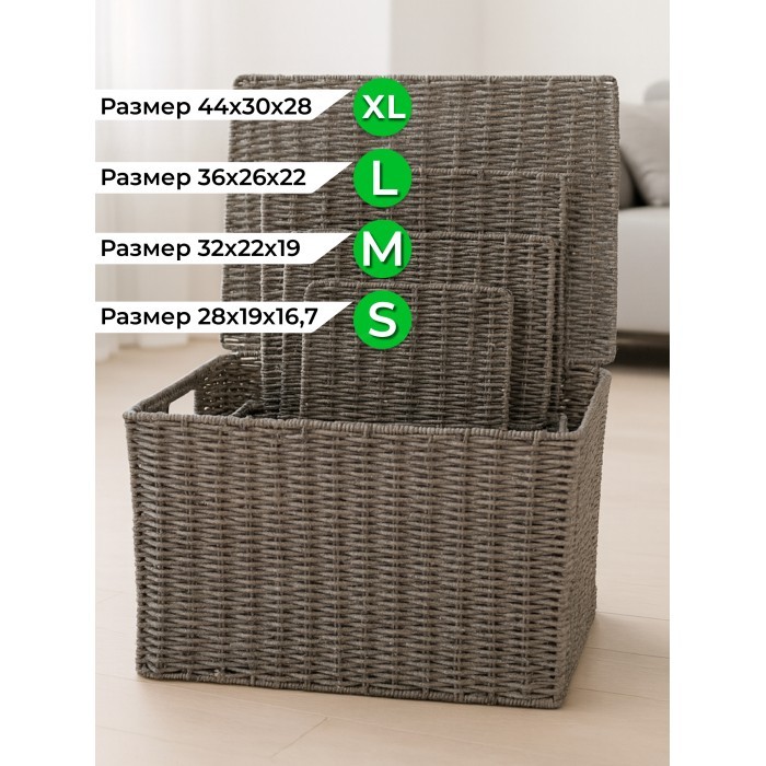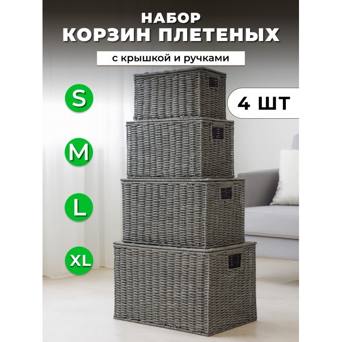 Корзина плетеная с/крыш КОМПЛЕКТ 4шт (S, M, L.XL) + иск/ротанг, серый 266235