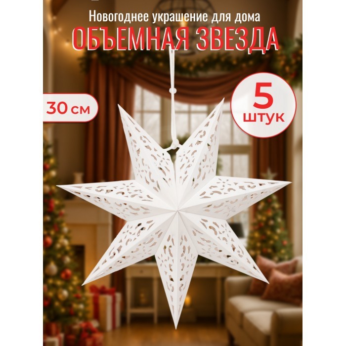 Набор Звезды Бумажные- HM-4 (30см-5шт) белый 266180