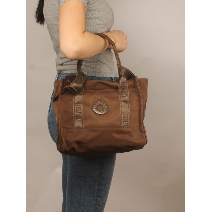 Сумка женская текстиль BoBo-8112-1, 1отд+еврокарман, плечевой ремень, коричневый 266015